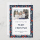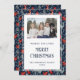 Fotos mágicas en azul y rojo. Fotos navideñas de ferry con bosques encantados con animales, aves, botánicos folclóricos y ornamentos nórdicos. Personaliza fácilmente esta tarjeta de vacaciones de fotos azul y roja con tu foto y nombre de familia.