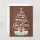 ¡Desee a sus amigos y seres queridos una feliz Navidad con esta tipografía preciosa y elegante! Un par de renos con pañuelos a rayas se frotan las narices. Las palabras "Una Navidad muy alegre" se tratan con un diseño de tipografía que hace que parezca como si estuviera saliendo en espiral del libro de Navidades y coronado con una estrella azul. El libro tiene íconos Navidades como caldo de Navidad, caña de caramelo, gorra de Navidades y adornos decorativos. Una textura de panel de madera para el fondo.