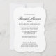 Esta sencilla pero clásica invitación a la ducha de novia ofrece una elegante combinación de fuentes. Este diseño es atemporal y funcionará con cualquier tema boda. Personalizar el color de fondo para que coincida con los colores bodas.