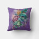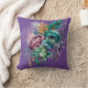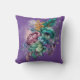 Espléndida almohada floral en tonos violeta y verde azulado.