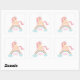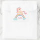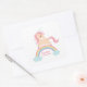Pegatinas con un lindo unicornio con una cola y una melena rosada en un puente arcoiris entre dos nubes. ¡Ideal para la fiesta de cumpleaños de las niñas! Añadir el mensaje de su fiesta.