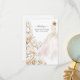 Novia acuarela con traje boda adornada con magnolias doradas y blancas. Se puede cambiar todo el texto.