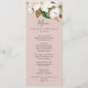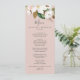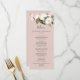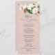 Esta elegante carta de menú de la cena de boda rosa magnolia es perfecta para un boda moderno y elegante. El diseño floral suave incluye peonías de color agua rosa rubor, magníficas flores de magnolia blanca y algodón con hojas doradas y verdes en un arreglo lujoso sobre un fondo rosa claro. Este menú se puede utilizar para la recepción de bodas, la cena de ensayo o cualquier evento.