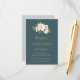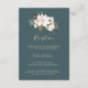 Esta elegante tarjeta de inserción verde azulada de la recepción magnolia es perfecta para un boda moderno y elegante. El diseño floral húmedo incluye peonías color agua rosada, impresionantes flores de magnolia blanca y algodón con hojas doradas y verdes en un arreglo lujoso sobre un fondo verde azulado. Personalice esta tarjeta de gabinete de detalles con su información de recepción e incluya también la dirección de su sitio web boda.
