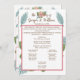 Toda la información de la recepción de bodas en ONE! Programa de boda floral y romántico personalizado (lado delantero) con carta de asientos para los huéspedes y menú (lado trasero). El diseño floral con magnolia rosa acuarela, lirios y palmeras. Vea los elementos coincidentes en la colección de Bodas Magnolia Lilies Bouquet.