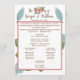 Toda la información de la recepción de bodas en ONE! Programa de boda floral y romántico personalizado (lado delantero) con carta de asientos para los huéspedes y menú (lado trasero). El diseño floral con magnolia rosa acuarela, lirios y palmeras. Vea los elementos coincidentes en la colección de Bodas Magnolia Lilies Bouquet.