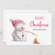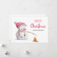 Cute Feliz Navidad en familia con un ilustracion de un lindo muñeco de nieve con gorra rosa y malvaviscos asados con bufanda. Personaliza el texto para agregar tu propio mensaje de corazón y enviarlo a tus seres queridos esta próxima temporada de fiestas. Ilustrado y diseñado por Patricia Álvarez.