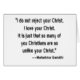 La cita de Mahatma Gandhi dice: "No rechazo a tu Cristo. Amo a tu Cristo. Es sólo que muchos de ustedes cristianos son tan diferentes a su Cristo". Y sí, se escribe "Gandhi" no "Ghandhi". Y un punto bien hecho al que los cristianos deben prestar atención.