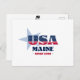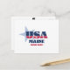 Postal principal. Un diseño tipográfico creativo que resume la esencia de Maine con colores rojo, blanco y azul audaces y elementos patrióticos, incluidas estrellas y rayas.