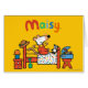 Apenas llegando su habitación, Maisy se sienta feliz en su colorido, colcha del lunar. Este ilustracion de los primos de Lucy de "Maisy va el vacaciones," publicado por la prensa del pábilo, también muestra la panda rellena de Maisy, su gorra del sol, y su pala. Los niños amarán esta imagen del ratón familiar que consigue listo para ir a la playa.