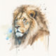 Este majestuoso león tiene hermosas y suaves acuarelas que capturan una mirada conmovedora de esta magnífica criatura.
