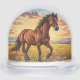 Un magnífico caballo marrón galopa a través de un colorido campo de flores durante una impresionante puesta de sol, evocando sentimientos de libertad y belleza de la naturaleza.