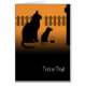 Nuestra tarjeta de Halloween es tan bonita que hará que te duelan los dientes. Kitty y Kitty Junior golpearon el porche, sacudiendo a los vecinos en busca de dulces. Junior abastece la canasta mientras Kitty acecha en el fondo (lo que se conoce en el biz truco o traza como "el músculo"). ¡Y mi piel! - ¡Junior vestido de perro! Estamos razonablemente seguros de que Junior está usando una máscara de perro y no, ya saben, una cabeza de perro real (por ejemplo, ese caniche de ladrillos de al lado que nunca se cierra. Una vez más, sólo un ejemplo). Tampoco estamos seguros de cómo nuestro dúo manejó el timbre. Quién sabe, tal vez han estado esperando ahí desde el día de Arbor. En cualquier caso, mejor hacer con el dulce a menos que seas un fan de las cabezas crujientes del ratón, si atrapas nuestra deriva. Personalizable, para que puedas añadir tu propio saludo de Halloween dentro.