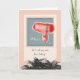Esta increíble tarjeta acuarela tiene un electrizante cuadro húmedo de un secador de pelo rojo, y un montón de pelo oscuro debajo. Dice: "¡¡¡¡¡¡Ahhh!!!!" "Así que hoy me corté el pelo..." Y por dentro, "¿Cómo ha ido su pandemia?! Pensando en ti".