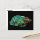 Foto de Malachite - un mineral verde - de fondo negro. Texto "malaquita" en la parte superior izquierda.