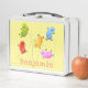 Estas 5 medusas se están divirtiendo mucho. Dibujado en un bonito estilo de ilustracion personalizado sobre un fondo polka amarillo claro.
