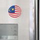 La bandera de Malasia ha sido cuidadosamente ajustada a la forma circular de este imán. Una forma decorativa de promover la cultura malaya.