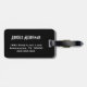 Esta etiqueta de equipaje negro está lista para viajar. El diseño moderno presenta una franja negra rodeada de rayas blancas en negro con un círculo borgoñoso en el centro en el que se colocan los tres monogramas. En la parte posterior puede personalizar su nombre, dirección y número de teléfono. Esta etiqueta de equipaje es un gran regalo para los hombres. Derechos de autor Kathy Henis