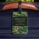 Esta etiqueta de equipaje está diseñada con un patrón verde de camuflaje. Es un gran regalo para un hombre que está en el ejército/ejército. Con el monograma personalizado, el nombre en la parte delantera y otra información, esta etiqueta es un gran regalo para esposos, novios, padres, abuelos, etc.