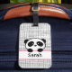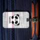 Estas etiquetas de equipajes modernas y de moda tienen un diseño elegante de panda negro, rosa y blanco sobre un fondo de doodle en blanco y negro.