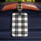 Elegante etiqueta de equipaje de plástico en dos colores para elegir. En el reverso se mantiene la información en el tipo de letra sans serif sobre un fondo blanco.