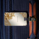 Hermosa etiqueta moderna para portaequipajes con ornamentos dorados