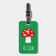 Etiqueta personalizada de equipaje de hongos rojos para niños. Etiqueta de bolsa de Personalizado para maleta de niño. Un cumpleaños o una idea de regalo para los Navidades para niños y chicas. Diseño natural con fondo color personalizable. Etiqueta personalizada de equipaje para niños. Diversión para kindergarten, escuela gramática, escuela primaria, profesor, etc.