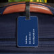 Esta etiqueta azul marino del equipaje dice "Vamos" delante y tiene la información de contacto de su personalizado en la parte posterior. El color azul puede cambiarse a tu elección.