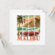 Disfrute del lujo relajado de Malibu, California, con esta vintage tarjeta de felicitación que presenta un clásico coche deportivo rojo que recorre la pintoresca carretera de la costa del Pacífico. Esta obra de arte se encuentra sobre un telón de fondo de olas oceánicas, surfistas, montañas con besos de sol y vistas a las palmeras. Perfecto para los amantes de la playa, los amantes de los coches y los viajeros costeros, este diseño de estilo retro combina las vibraciones costeras con la aventura atemporal.