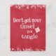 No consiga su malla en regalos y la decoración del enredo de una cita del navidad. Las lonas de la decoración del navidad de la diversión con navidad divertido y lindo citan: No consiga su malla en un enredo con los bordes ligeros rojos de las chispas del fondo y del bokeh con acento del ornamento del navidad.