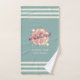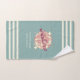 Toalla de color beige verde azulado para turistas, residentes, empresarios o propietarios de casas de playa de Mallorca. Los nombres y los textos son personalizables según las necesidades individuales.