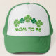 El diseño afortunado del día del St Patricks del trébol de cuatro hojas para que la mamá embarazada sea viene en un gorra verde y blanco del camionero que usted pueda personalizado con un nombre en vez de la invitación de maternidad si usted quiere.