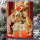 Madre Besando Santa Claus Vintage Navidad Escena postal de Navidad. Este diseño presenta niños tropezando con mamá besando a Santa. Qué hermosa escena de vacaciones retro.