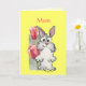 Diga Feliz Día de la Madre con bunshine: Un conejo personalizado y algunos tulipanes de color agua de bonito sobre un brillante fondo amarillo soleado dicen: "Mamá" Dentro dice: "Eres mi bunshine. ¡Feliz Día de la Madre!" Esta tarjeta se puede personalizar completamente. Cambia el texto a tus propios dichos especiales o deseos de cumpleaños o vacaciones o personalizarlo con el nombre de alguien.