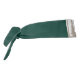 The Tie Headband features a calm design in green and natural tones. A subtle artistic illustration is printed: a man sitting cross-legged in a classic yoga pose.