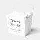 Ofrezca a sus huéspedes estas cajas personalizadas "Mañana lo hacemos!" para el ensayo de la cena, preferiéndolas en la noche antes del fiesta.