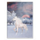Unicornio en un amanecer invernal..o puesta de sol.....ambientación. una manera mágica de empezar o terminar el día la tarjeta de felicitación de fantasía