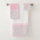 Toallas con estampado de Mandala rosa y gris.