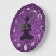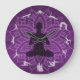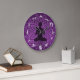 Mandala púrpura serena con yoga posa un reloj de pared decorativo. El diseño incluye un fondo de mandala morado y lavanda y ilustraciones semitransparentes de yoga de silueta. En el centro se coloca una gran posición sentada en tono más oscuro, mientras que las posiciones más pequeñas son claras y se colocan alrededor del centro en las posiciones de las horas. Bonito regalo para un profesional del yoga, profesor o instructor.