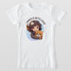 Esta encantadora camiseta muestra el ilustracion de una persona sosteniendo suavemente un perro naranja con ojos grandes y expresivos. La frase "MANEJAR CON CUIDADO" se muestra de forma destacada sobre la imagen, enfatizando el mensaje de ternura y cuidado de los animales. El fondo azul claro con las nubes aporta un toque de tranquilidad al diseño.