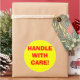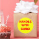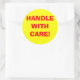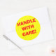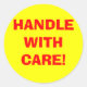 Estas etiquetas amarillas de advertencia de envío redondo tienen "¡MANEJAR CON CUIDADO!" en letra roja grande. Este diseño se puede adquirir tal cual o puede utilizarlo como plantilla para hacer su propio diseño de etiqueta de envío.