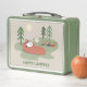 Echa un vistazo a este lindo maní enclavado en el diseño de los bosques con Snoopy y sus campistas durmiendo en el campamento.