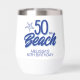 ¡Celebra este cumpleaños especial con este vaso de vino 50 Is A Beach Birthday! Mano caprichosa dibujó doodle 50 cumpleaños playa Tumbler de agua