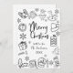 Una preciosa carta de vacaciones dibujada a mano con las palabras Feliz Navidad y tu nombre y año familiar. También hay un mensaje al revés que puedes personalizar con tu propio mensaje de vacaciones.