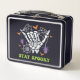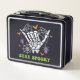Si le apetece lo macabro y le gusta la fantasía, esta lonchera es su compañera perfecta. Este diseño único presenta unos preciosos huesos de mano entrelazados con delicadas telarañas, todo acompañado por la audaz proclamación "Quédate con miedo". ¡Elige los tuyos!