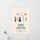 Si busca una simple tarjeta minimalista de Navidades hermosa y fácil de editar. Este es perfecto para ti. Y como ven el diseño presenta una mano verde hecha y dibujada árboles de Navidad y estrellas, con tipografía escrita a mano verde de MERRY NAVIDAD. Y tu apellido y año bajo él. Y en la parte trasera tienes un saludo de Navidades de personalizable y una foto familiar dentro de un marco verde dibujado a mano.