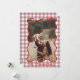 Rústico arco rojo enmarca tarjeta de foto de Navidad. Edite los deseos de su personalizado en la parte posterior de la tarjeta.