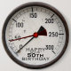 Manómetro ventilado con aguja que se coloca en el número 50. ¡Perfecto para alguien que tiene sentido del humor! botón Cumpleaños del personalizable. Puede cambiar fácilmente el color del texto, el tipo de letra, el tamaño y la posición haciendo clic en el botón personalizar.