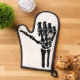 Añada un toque de glamour espeluznante a su cocina con este único horno mité. Con un atrevido gráfico negro de la mano del esqueleto con un brillante anillo de diamante en uno de los dedos bonitos, este mitt es práctico tanto para el manejo de platos calientes como para una divertida pieza de declaración. Perfecto para los amantes de la elegancia en su decoración.