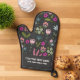 Super lindo estuche de horno con un patrón floral y 2 líneas de texto personalizado. Hace un regalo perfecto para un panadero, chef, mamá, abuela, novia o cualquier persona que ame pasar tiempo en la cocina.